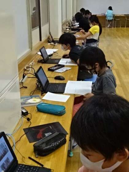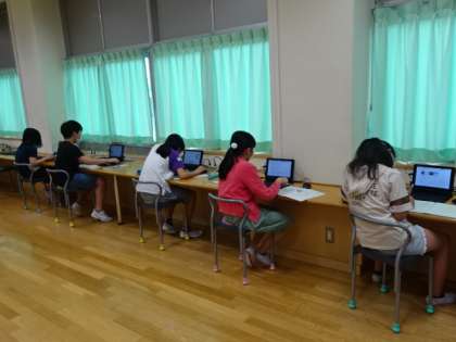 インターネットを使って調べたことをまとめています。みんなうまく資料が見付かったようで、真剣に書き写しています。