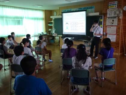 市教育センターから講師をお招きして、5年生の各教室ごとに「情報モラル講座」を受講しました。子供たちは興味のあることだけに、真剣に講師の先生の話を聞いていました。