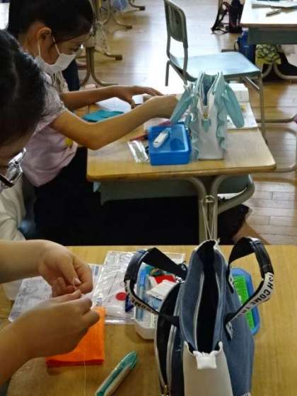 「マイ・ぬのバック」づくり。完成に近づいてきました。最後まで、丁寧に取り組んでいます。