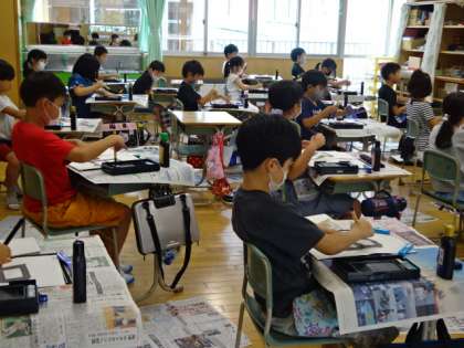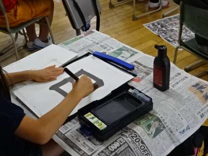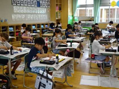 書写は、まず姿勢が大切ですね。みんな姿勢に気を付けて練習しています。