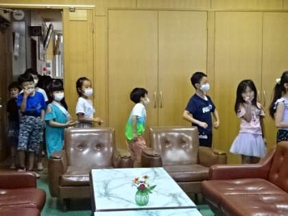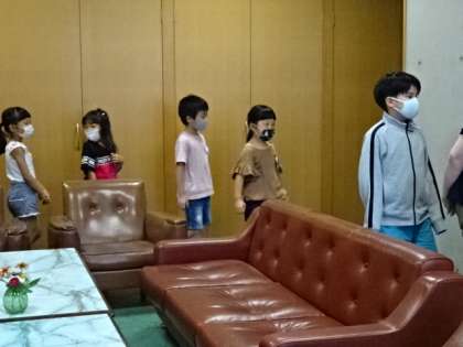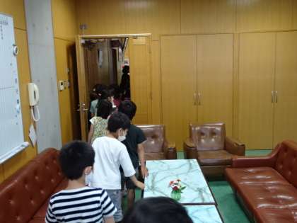 校長室には何があるのかな?校長室の見学に来ました。ソファーがいくつもあるのは、何のため?これから見てきたことをもとに考えます。