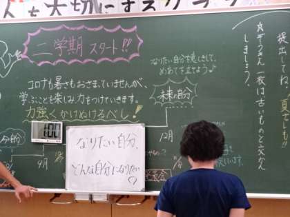 2学期はどんな自分になる?グループごとにワークショップ形式で、楽しく発表しています。