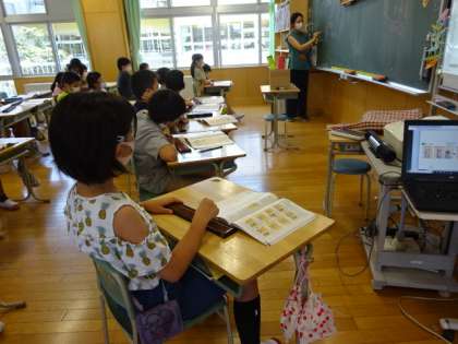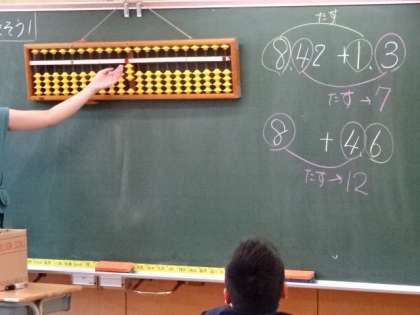 そろばんの学習です。小数のたし算をがんばってやっています。