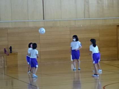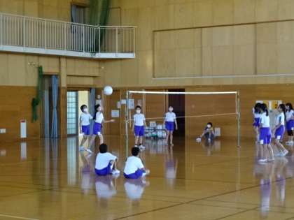 暑い体育館の中でも、がんばってビーチバレーボールをやっています。