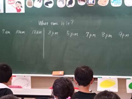 「What time is it ?」チャンツに合わせて、リズムよく覚えよう!