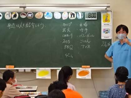 「身近な人を紹介しよう」自分の身近な人を英語で紹介する練習です。クイズ形式で楽しく学習しています。