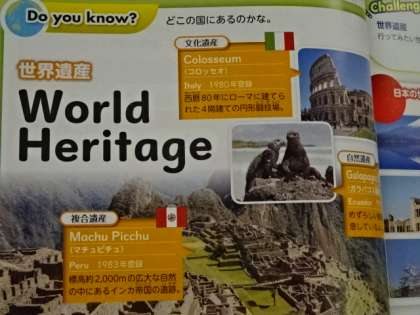 世界遺産の学習です。世界遺産と英語が同時に学べる!