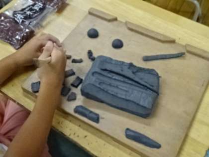 これまでの粘土とは違う。切り糸やへらを使って形をつくり、そこからイメージをふくらませる。