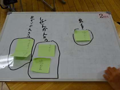 「山小屋で三日間過ごすなら・・・」グループで話し合ったことを発表しています。