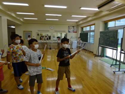 空気でっぽうを使って、とりあえず飛ばしてみよう。「ポン」という音がたまりません。