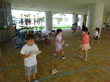 紙でっぽうを作りました。さて、大きな音を鳴らせるのは誰だ。