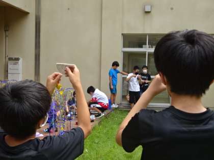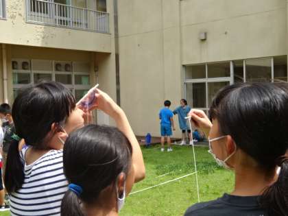 学習したことを使って、校舎の高さを測ってみよう。実際の高さに一番近いのは、どのグループ?