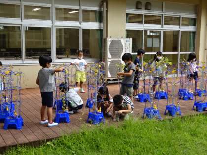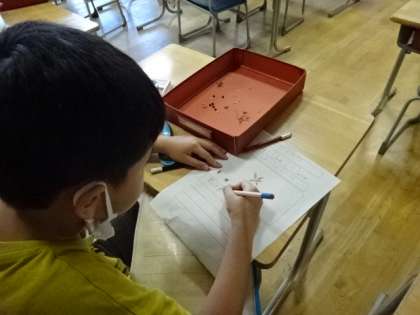 アサガオの種をとって、観察しています。種の数も人によって違うね。