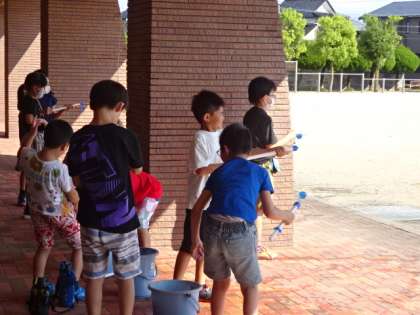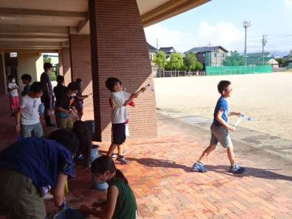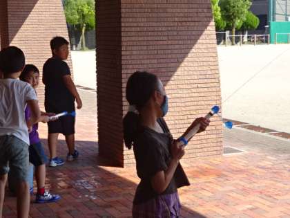 この暑い日に、水鉄砲は楽しい!でも、ちょっと待った!空気鉄砲と水鉄砲では、飛ぶ仕組みが違うのかな?気付いたことをノートにたくさん書いてね。
