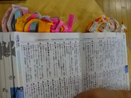 分からない言葉は国語辞典で調べるしかない!たくさん付箋がついている、マイ辞書を持っている人もいます。