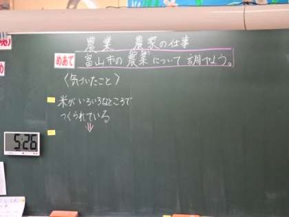 富山市ではどんなものを作っているのだろう?富山市の農業について、資料をよく見て学習を進めています。
