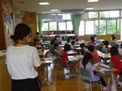 9月に入ってから、毎週水曜日の午前中、2名の学生さんが来校して子供たちの学習や生活の様子を見ておられます。これは、富山国際大学のインターンシップ事業で、教員を目指している4年生が、授業を視察したり、環境整備のお手伝いをしたりするものです。時々、子供たちにも声をかけてもらっています。