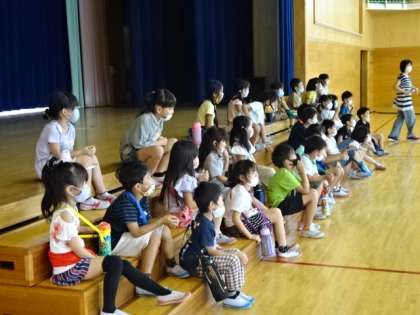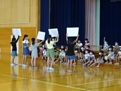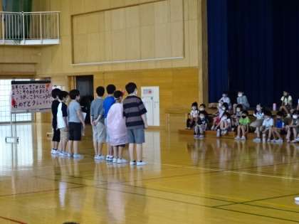 6年生が1年生を招待して、クラス集会を実施しました。寸劇やクイズで学校を紹介しています。