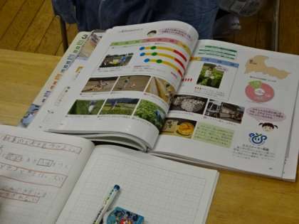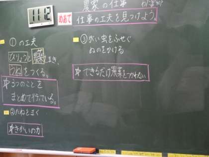 農家の人はどんな工夫をしているのだろうか?資料を見ながら話し合っています。