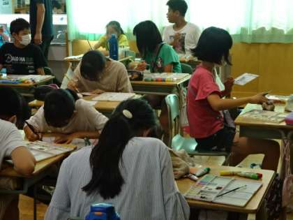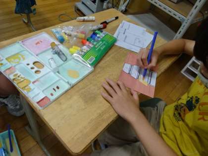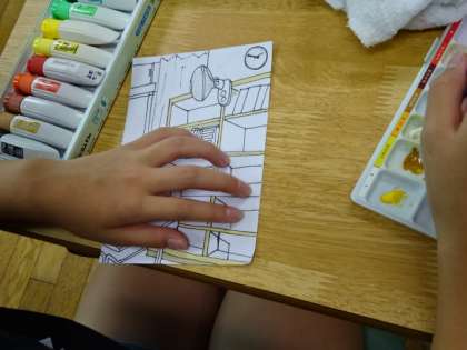 教室の一部を切り取って・・・。遠近法と水彩のよさを生かして描いています。