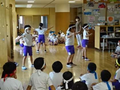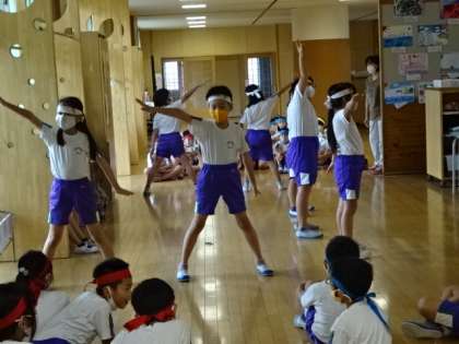 練習してきたダンスをグループごとに発表しています。しっかり練習してきたので、みんな気合いが入っています。