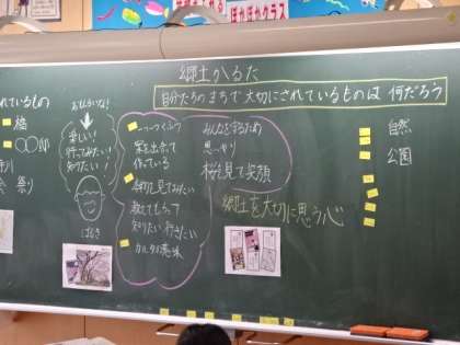 自分たちが住んでいる町で、大切にされていることってなんだろう?郷土のよさについて考えて、話し合っています。
