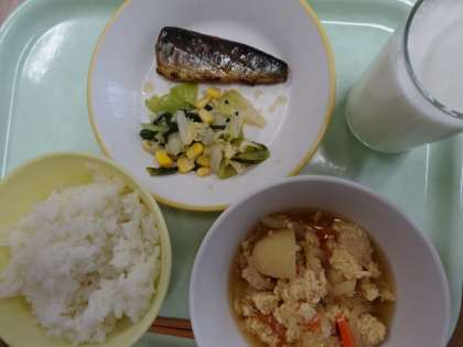 ごはん、牛乳、いわしの紀州煮、コーン和え、親子煮でした。