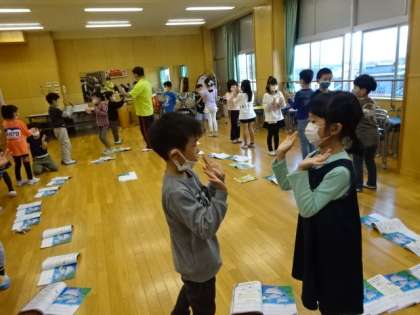 音楽に合わせて楽しく体を動かせながら、「いるかは ざんぶらこ」