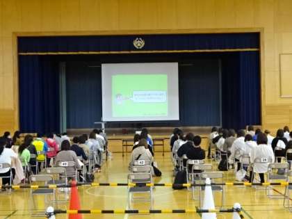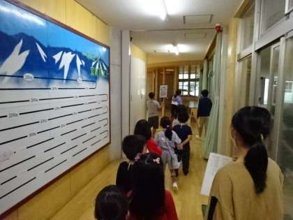来年の4月に入学する子供たちを対象に、就学時健康診断を行いました。5年生の一部の子供たちが、子供たちの誘導をしていました。来年の4月、待っています。