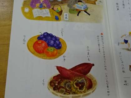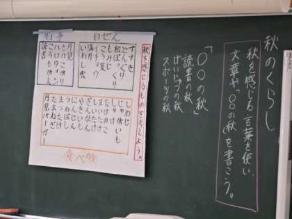 秋のくらしといえば、どんなことがある?やっぱり食べ物ですね・・・!秋のくらしについて話し合っています。