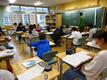 比例を使って解く問題。でも難問のようで、みんな頭をかかえています。