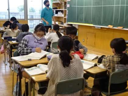 段落ごとに見出しをつけよう!グループごとに話し合って見出しを考えています。