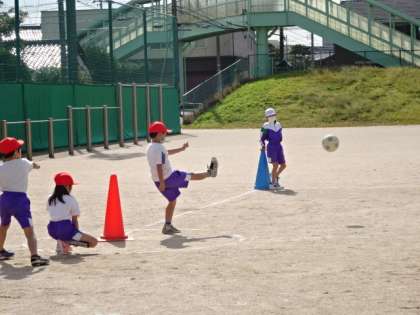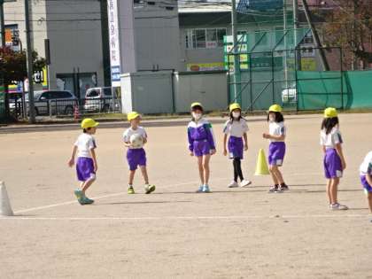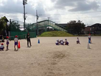 ドーナツ・キックベースボール、アウトにする時は集まって輪にならないといけません。