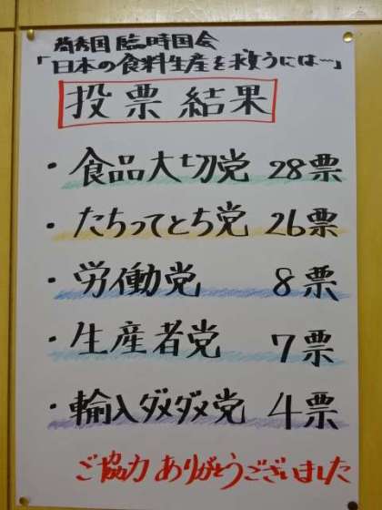 日本の食料生産を救う総選挙の結果が出たようです。一番多く投票を集めたのは・・・