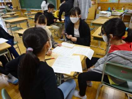 総合的な学習の時間で取り組んだことを、土曜日に行われる「学習の参観日」で発表するので、その準備をしています。