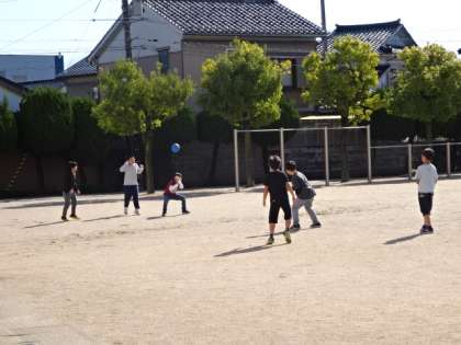 今日は、よいお天気です。業間の「らんしゅうタイム」には、グラウンドに出て元気に遊ぶ姿が見られました。薬師岳もすっかり白くなりました。