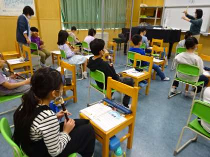 「あの雲のように」旋律の特徴を生かしてリコーダーを演奏しよう。その前に、指づかいを確認しています。