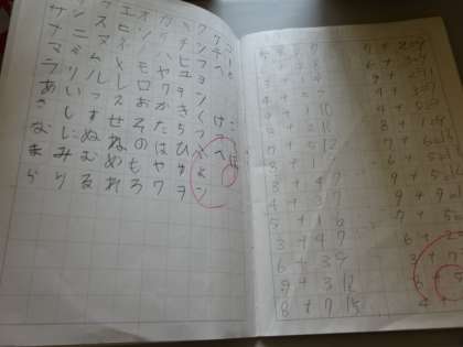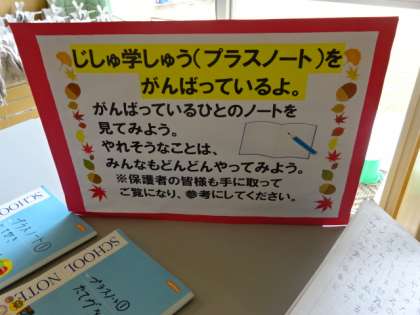 1年生の自主学習ノートです。自分から進んで取り組んでいます。