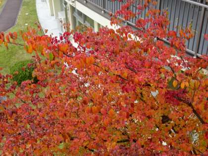 最近の冷え込みで、校内にある木もすっかり鮮やかな色に紅葉してきています。