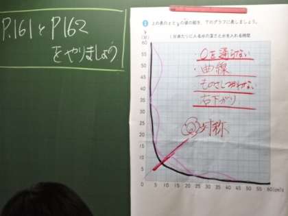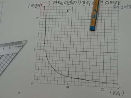 反比例のグラフ。この曲線を書くのが、今も昔も難しい・・・。