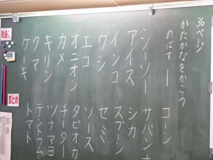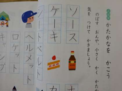 かたかなをかこう。たくさんかたかなで書く言葉が見付かりました。のばす音に気を付けてノートに書きましょう。