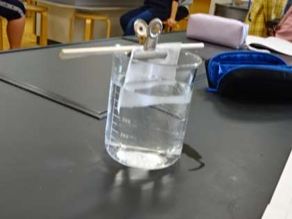 もののとけ方の学習です。食塩を水にとかしてみました。ここから「とける」ってどんなことかを学習していきます。