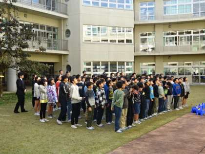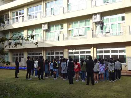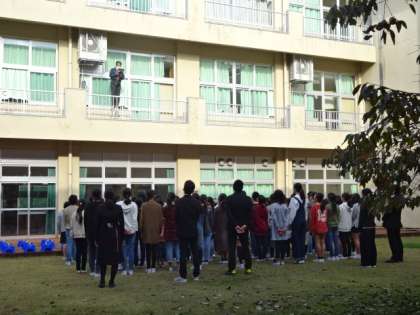 卒業アルバム用の集合写真を中庭で撮りました。天気がよくてよかったです。