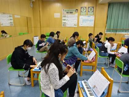 曲想を生かして合奏しよう。今日は、鍵ハとリコーダーの合奏です。