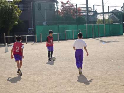 ミニサッカーのゲームです。今日は、男子と女子に分かれてやっています。