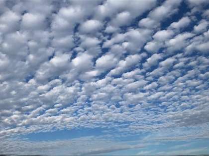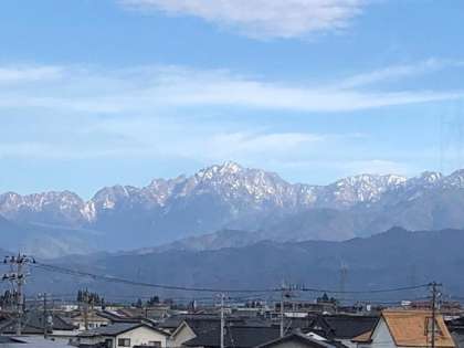 風が空気中の塵を払ったせいか、剱岳がくっきり見えます。北の空には、羊雲がたくさん。この雲が出ると、天気は下り坂と言われています。明日は、雨かな?