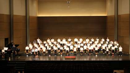 オーバードホールでの様子です。緊張感をもちつつも、楽しみながら最高の笑顔とハーモニーで会場を包み込むことができました。