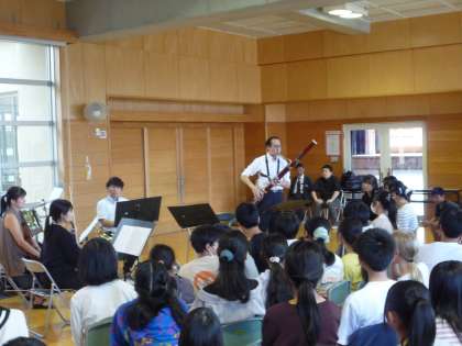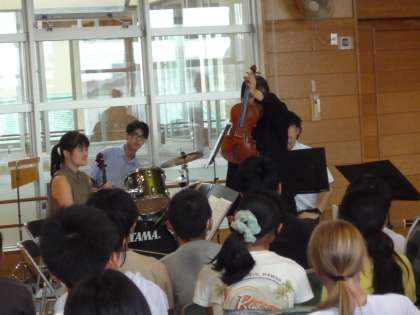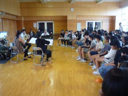 11月19日の本公演の前に6年生を対象としたミニコンサートが行われました。それぞれの楽器の特徴や音楽についてプロの方から学ぶ機会になりました。
