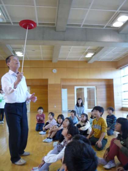 筒けんや皿回し、けん玉積みなどの遊びを体験しました。