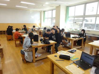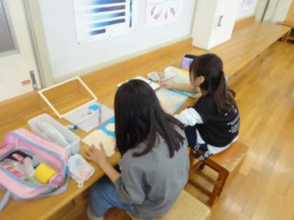 図画工作科の授業で、パズルを作り始めました。糸のこぎりを使い、ピースに切り分けていく予定です。